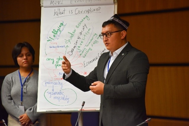 The young people, coming from all around the world, shared the detrimental effects of corruption on society and young people during interactive sessions throughout the two days:
