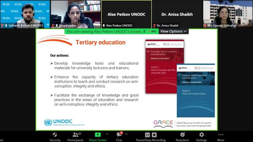 At the conclave, UNODC experts presented the Global Resource for Anti-Corruption Education (GRACE) Initiative and the Lockdown Learners series from South Asia.