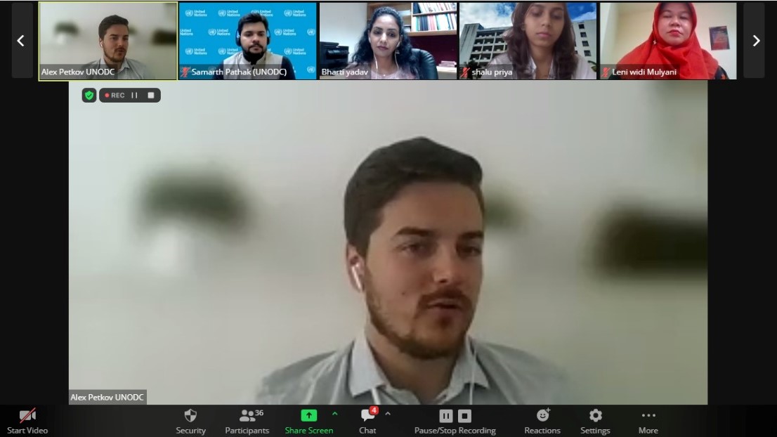 Students brainstormed COVID-19’s social impact and the SDGs, and the need to co-create sustainable solutions that leave no one behind with empathy and integrity. With case studies and contextualized examples, participants were informed about UNODC’s GRACE Initiative and other innovative efforts in South Asia, in countering crime and promoting peace and the rule of law. Students expressed their interest in working on issues such as human trafficking, discrimination, corruption and cybercrime, using their expertise in research, network-building, creative arts, technology and responsible activism.
