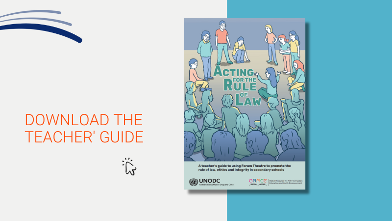 UNODC is pleased to present its teacher’s guide to using Forum Theatre to promote the rule of law, ethics and integrity, in secondary schools. Education plays a crucial role in strengthening young people’s engagement when it comes to the rule of law, ethics and integrity. Through the development of cognitive, socio-emotional and behavioural skills, students and educators can become transformative change-makers in society and can help communities become more sustainable and peaceful.