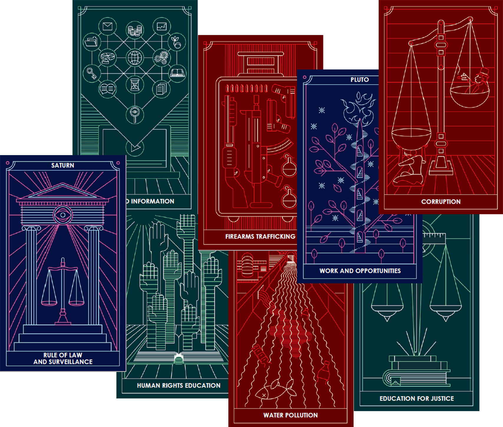 Participants in tri-planetary teams seek to develop civilization on a cosmic scale, starting with the Solar System. Phenomena such as violent extremism, genocide, large-scale "fake news" in all walks of life (not only politics), unrestricted access to and carrying of weapons of all kinds, global warming and the most varied behavioural dependencies have become epidemic, threatening nature and cultures, humanity and its evolution in the Cosmos. With planning and cooperation, each team will propose and negotiate initiatives and solutions to overcome these thorny challenges to Justice.