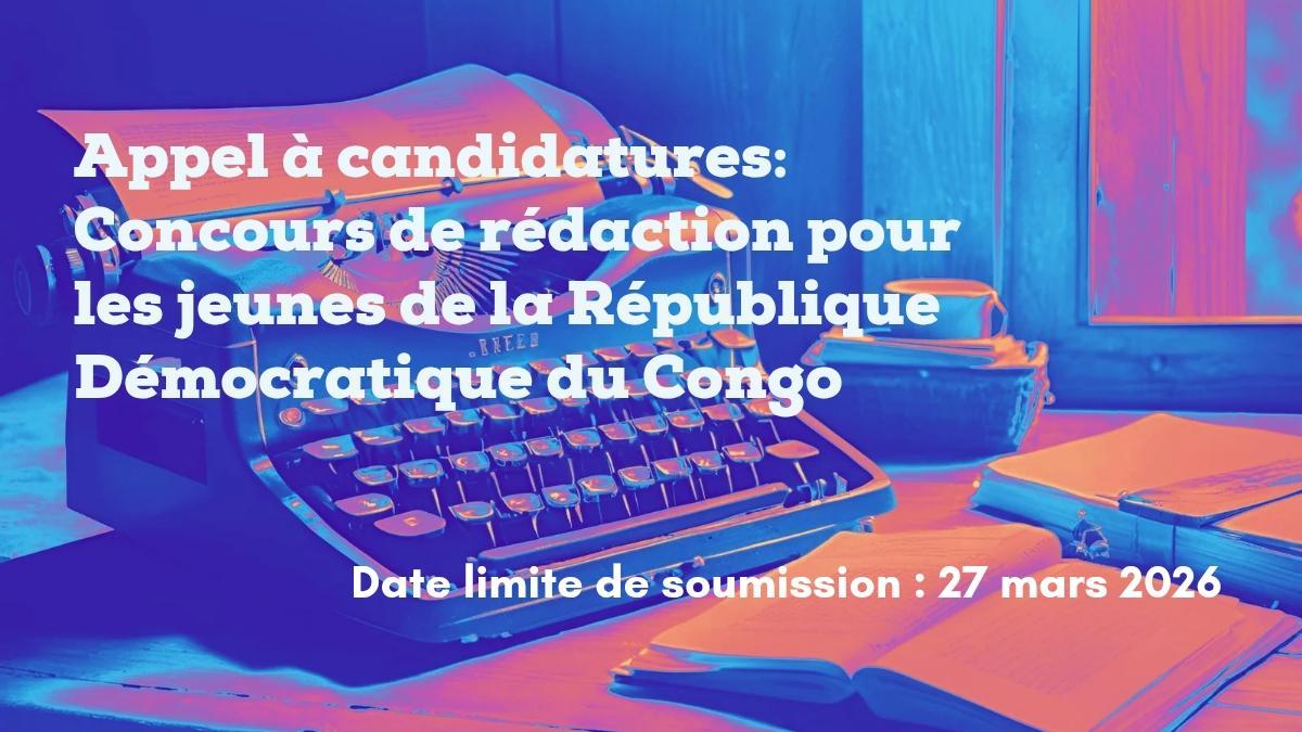 APPEL A CANDIDATURES - Date limite de soumission : 27 mars 2026 — ONUDC, dans le cadre de son initiative GRACE, a le plaisir de lancer un concours de rédaction pour les jeunes de la République Démocratique du Congo (RDC). Cette initiative vise à amplifier les points de vue des jeunes sur la corruption et à encourager une réflexion critique sur son impact sur la vie quotidienne, l'accès aux services publics ainsi que les opportunités futures. La corruption affecte les jeunes de multiples façons tangibles, façonnant leur expérience des services publics et limitant leur capacité à participer pleinement à la société. Dans le cadre de ce concours, les participants sont invités à réfléchir à la manière dont la corruption affecte leur vie quotidienne ... En savoir plus