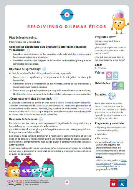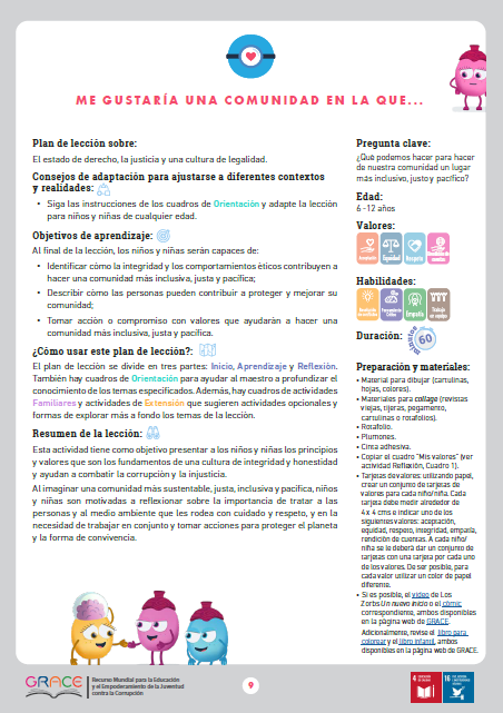 Algunas de las clases incluidas en los manuales tienen sus raíces en la historia y la cultura local, favoreciendo que los alumnos comprendan la manera en que evolucionan las leyes nacionales y en que las sociedades aprenden a resolver los conflictos y a vivir juntas. Otras clases dotan a los alumnos de las habilidades que necesitan para saber conducirse en la era digital. Las actividades de los manuales se arraigan en la Educación para la Ciudadanía Mundial, un enfoque que puede ayudar a fomentar la confianza en las instituciones públicas entre los jóvenes, convirtiendo a estos en agentes del cambio capaces de participar en la sociedad de forma constructiva y responsable.