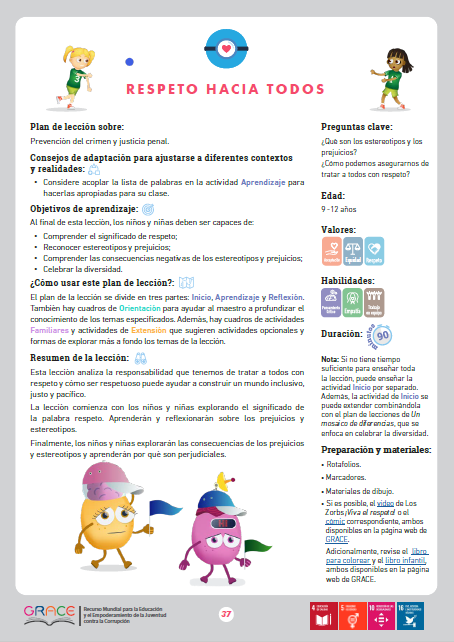 Los planes de clase se complementan con “Los Zorbs”, una serie de vídeos de animación y cómics, cuenta la historia de un planeta imaginario y sus habitantes, quienes superan múltiples desafíos gracias a valores y habilidades fundamentales que se promueven en el marco de la iniciativa. La serie se ha elaborado como una herramienta educativa divertida y abarca temas relacionados con la justicia, la ciberdelincuencia, los derechos humanos, el género y la integridad.