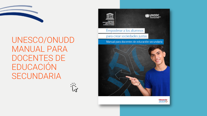 La ONUDD y la UNESCO publicaron conjuntamente dos manuales, uno para escuelas de educación primaria y otro para escuelas de educación secundaria, a fin de ayudar a los docentes a capacitar a sus alumnos y a que estos desarrollen el pensamiento crítico y la empatía, aptitudes que no suelen ocupar un lugar destacado en los planes de estudio escolares. Las clases interactivas fomentan la sensibilización de los alumnos respecto de sus derechos y derriban ideas erróneas sobre el derecho y la justicia. Los ejercicios, los juegos y las narraciones de cuentos ayudan a que las cuestiones sociales sean más entretenidas, incitando a los alumnos a que adopten una posición moral.
