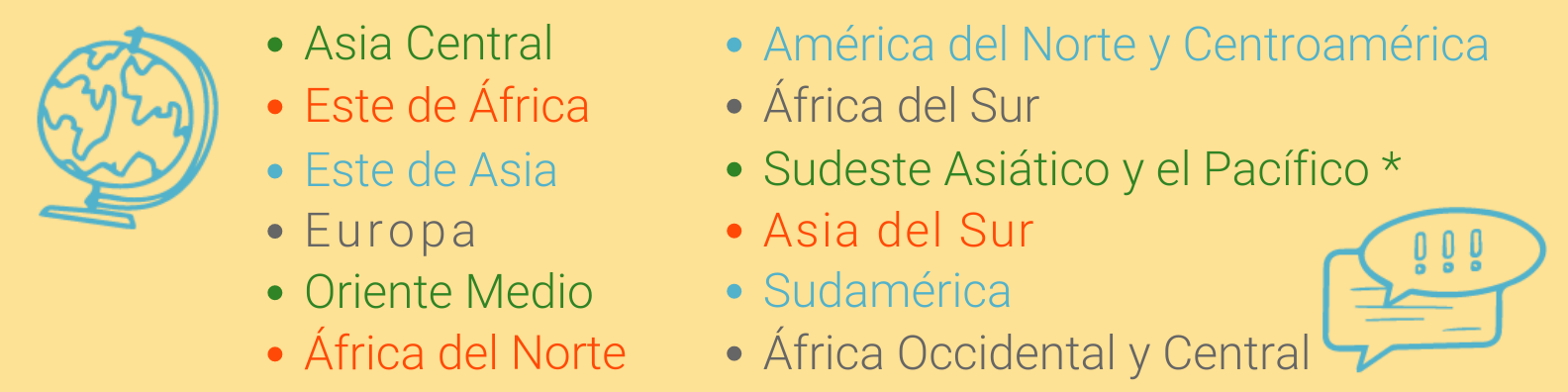 Para garantizar la representación regional y de género, la Junta de YouthLED está compuesta por dos jóvenes, de entre 18 y 30 años (en el momento de la solicitud), una mujer y un hombre joven, con experiencia en empoderamiento juvenil, integridad, ética y anticorrupción, de cada uno de los siguientes subgrupos geográficos: