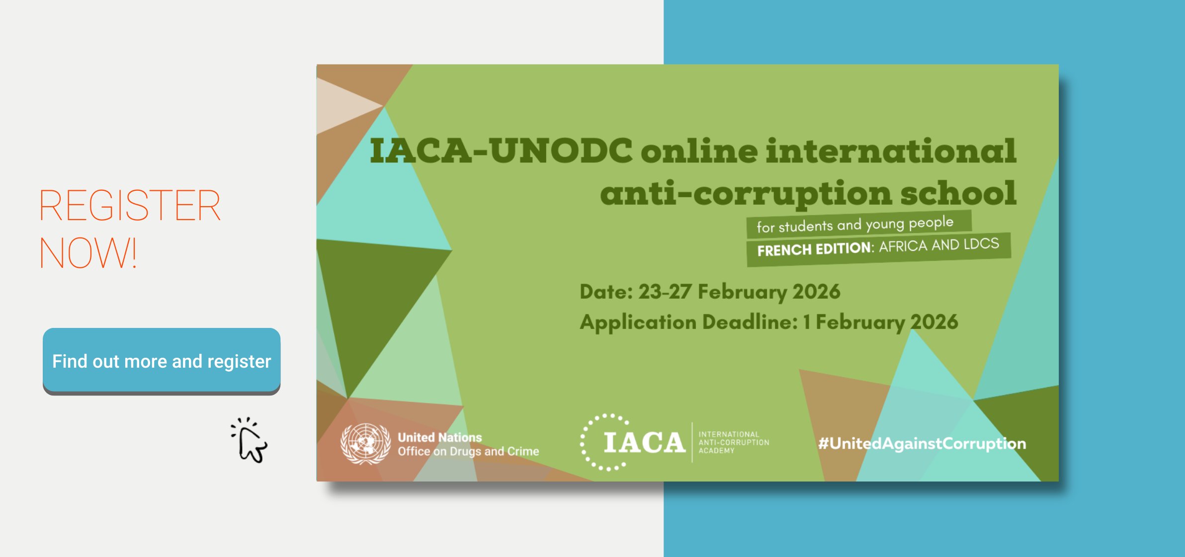 Основываясь на успешных инициативах «Образование для правосудия» (E4J) и «Академический курс по борьбе с коррупцией» (ACAD), получивших всемирное признание за их ценный вклад в поддержку бенефициаров в государствах-членах, УНП ООН запустило инициативу «Глобальный ресурс по вопросам антикоррупционного просвещения и повышения антикоррупционной активности молодежи (ГРЕЙС) для дальнейшего продвижения роли образования и расширения прав и возможностей молодежи в предупреждении и противодействии коррупции.