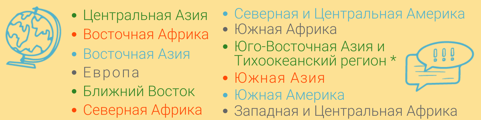 Далее представлены профили членов первого состава Консультативного совета YouthLED во вопросам честности, с разделением на представляемые субрегиональные группы: